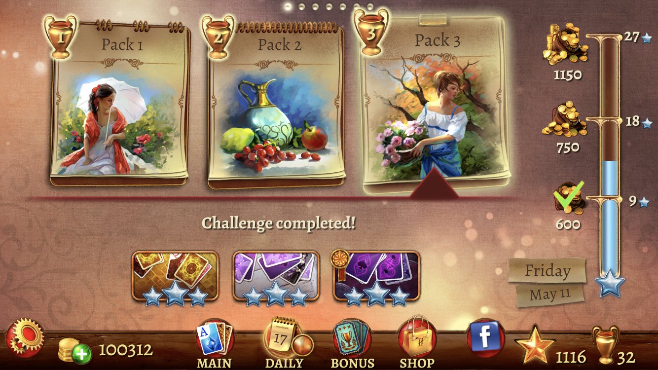 We're starting beta tests of the new version 1.2 of Heartwild Solitaire Dreams. After watching how people play the game, we've realized that the concept of packs and tables hidden inside them that you have to play in a sequence was just too confusing. So we've reworked this completely. See how different the main screen looks now: