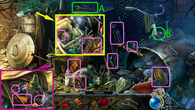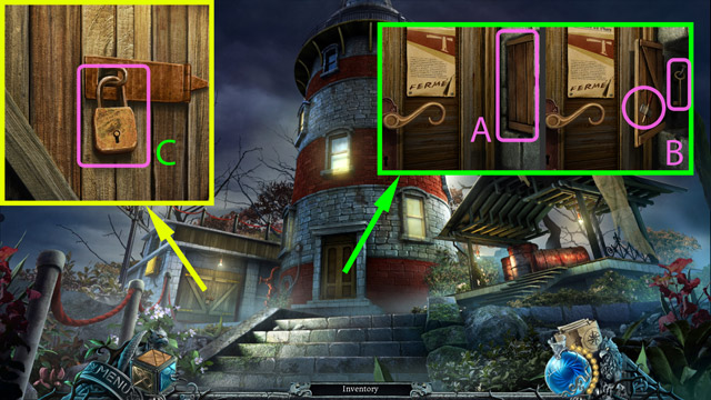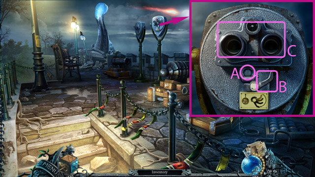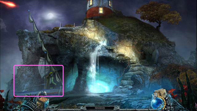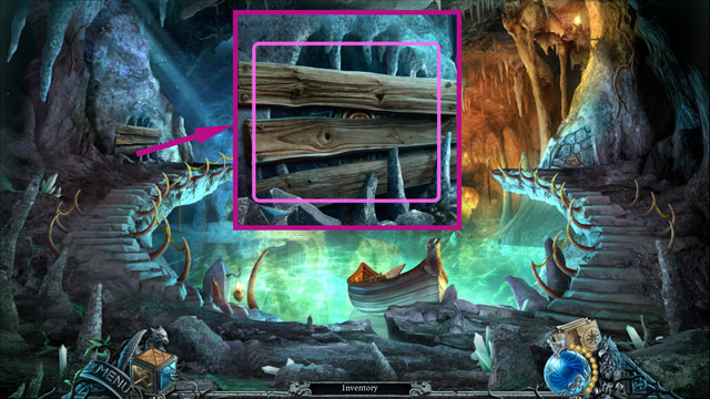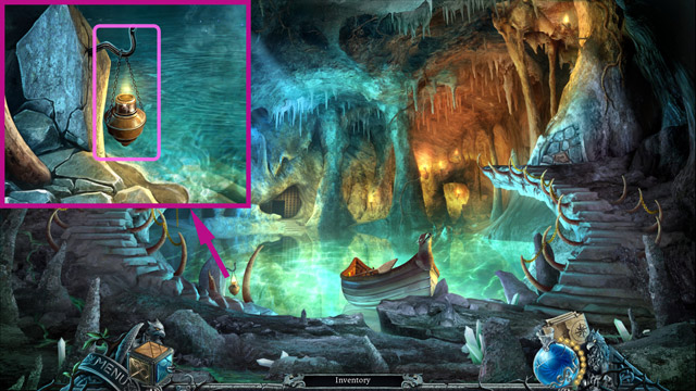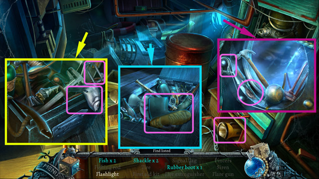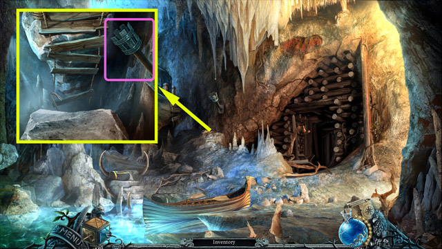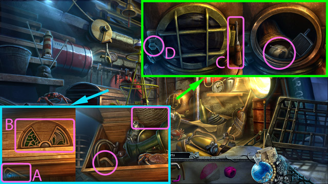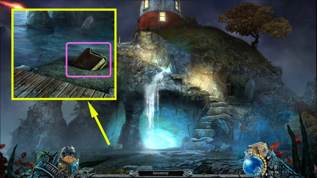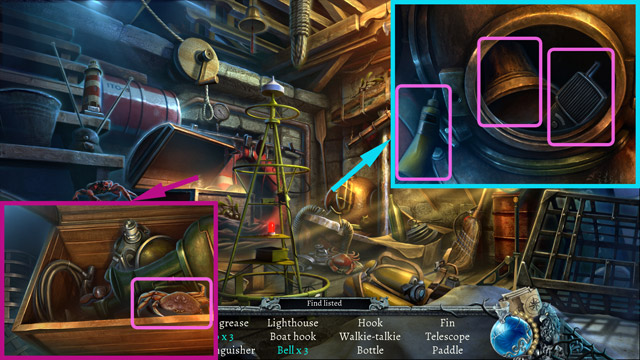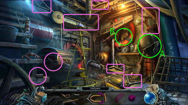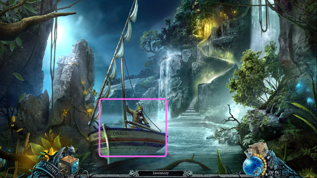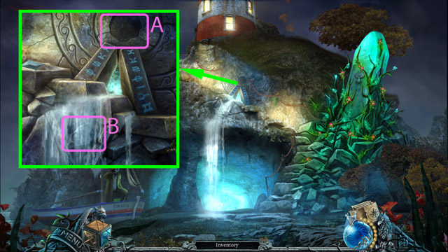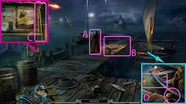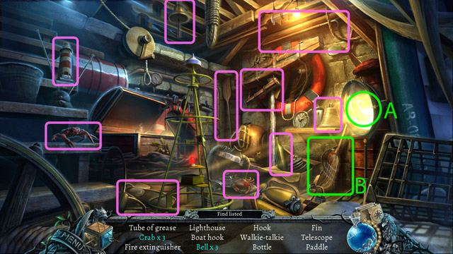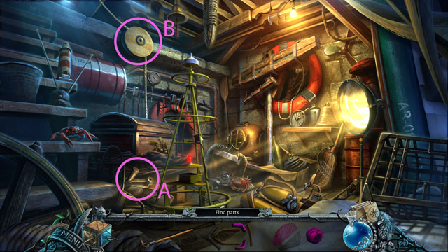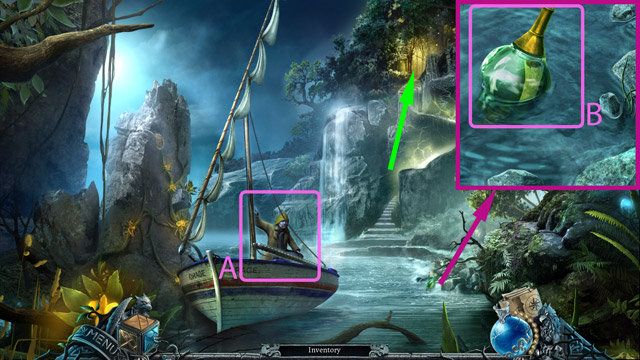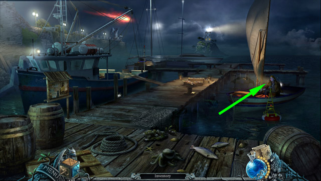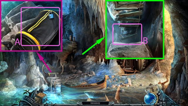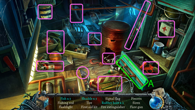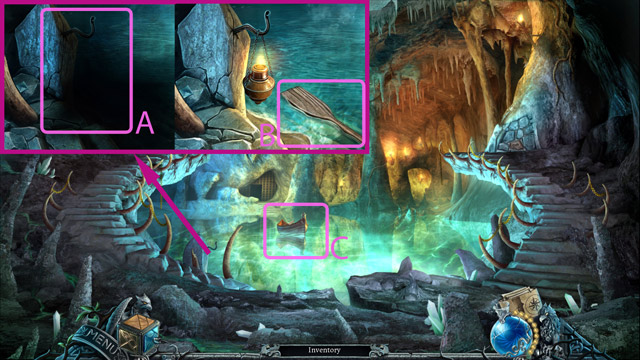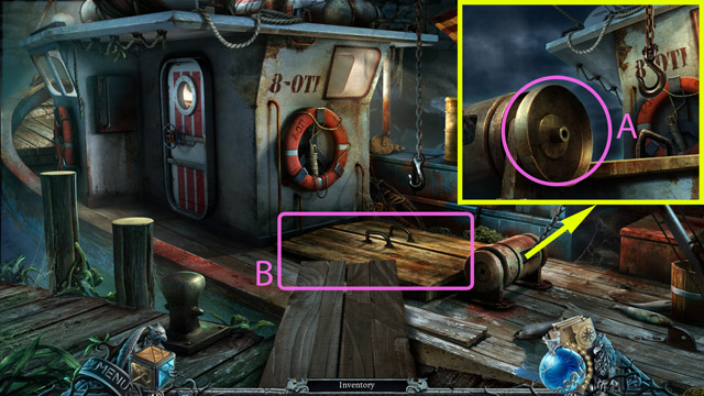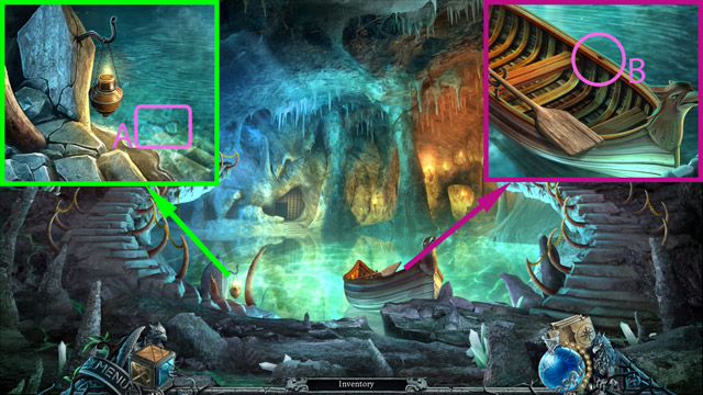 • Use the Fishing net to retrieve the Oar holder from the water (A).