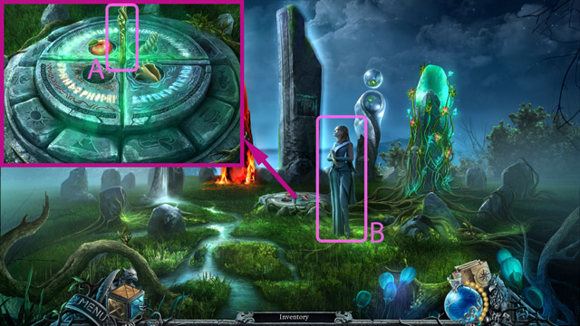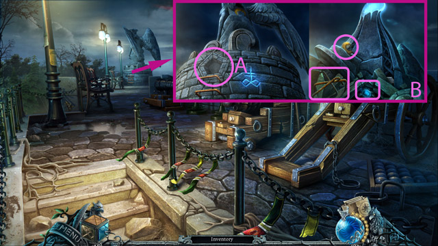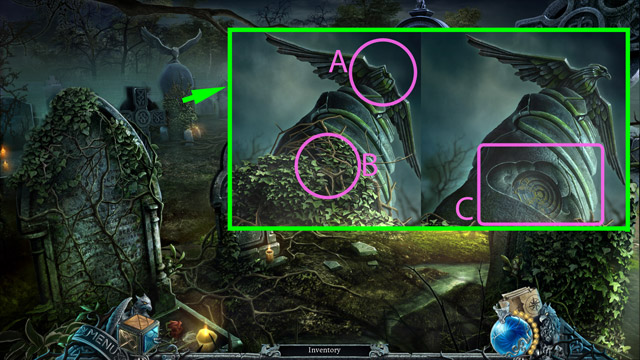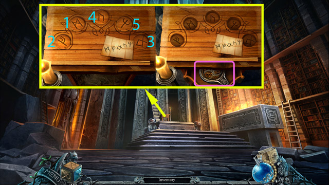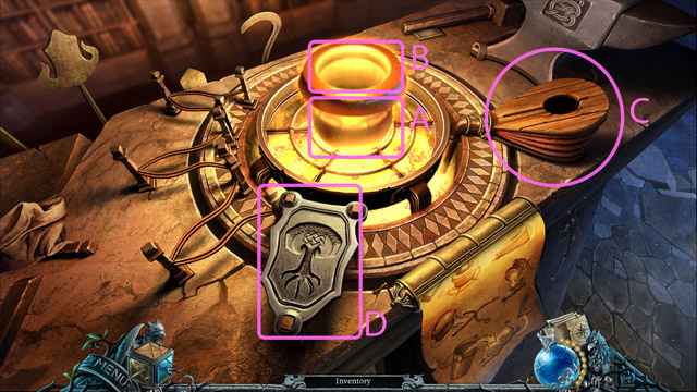 • Insert the Silver gryphon into the mystery box then pick up the Emblem and the Myrtle leaves.