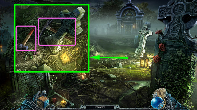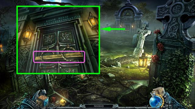 • Go to the cemetery and remove the beam. Then open the door and go inside the crypt.