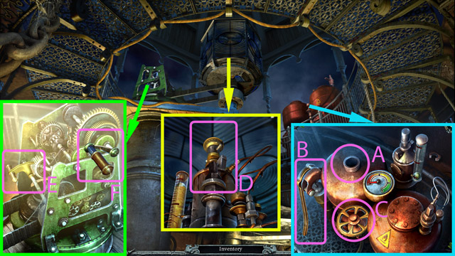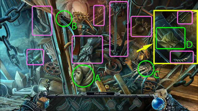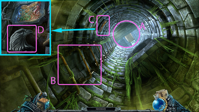 • Take the screwdriver (C) and use it to unscrew the helmet (D)