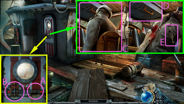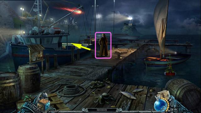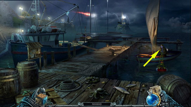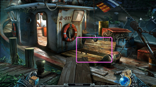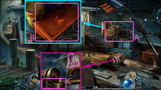 • Untie one of the boat ropes and use the Boat hook to remove the second one from the buoy (D)