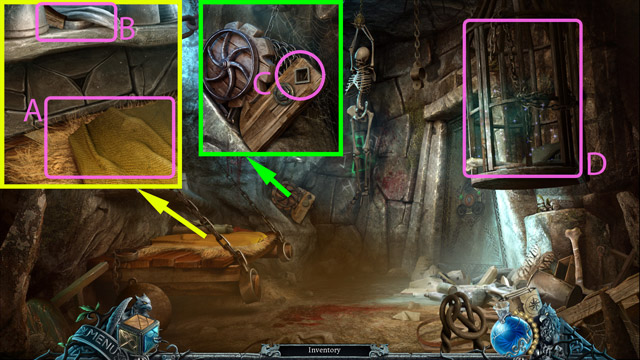 • Remove the cobwebs (D) from the Axe and pick it up.