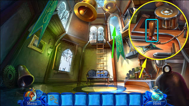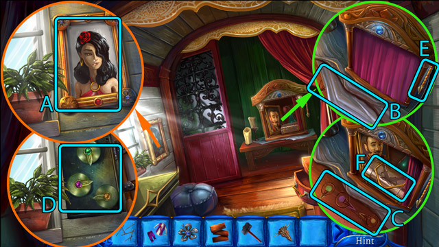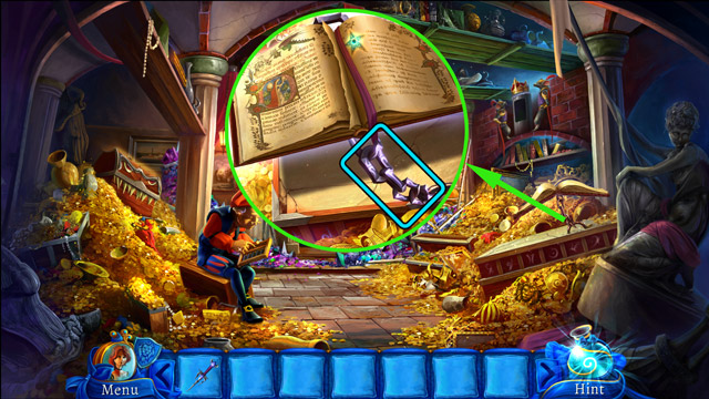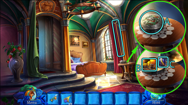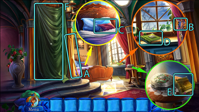 - Move the pillow (C) and then pick up the Blue book under it.