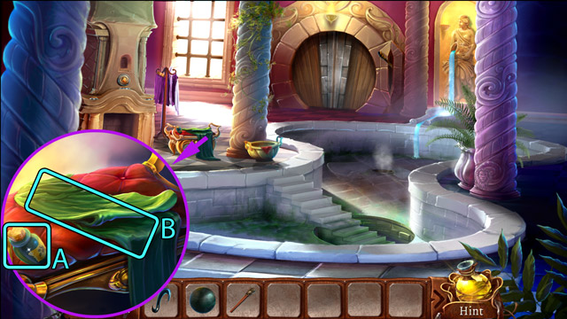 - In the baths cut the rope (A) using the Razor and then pick up the third Marble ball (B).