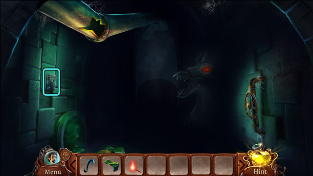 - Pull the rope that fell out of the mouth of the strange sculpture.