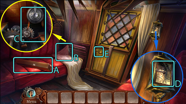 - When the wagon is placed on the tracks, pick up the Lens (D)