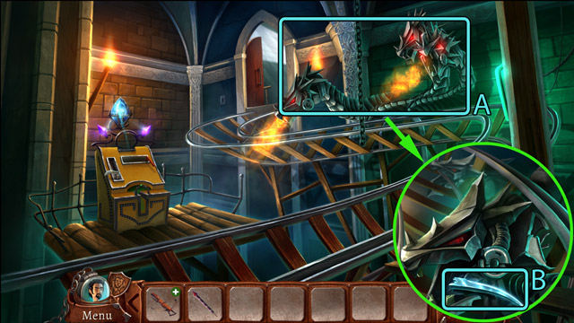 - Insert the Dragon adornment into its place on the small door (B) and open it.