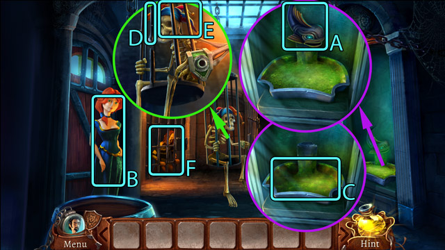 - Add the Hair lock to the cauldron (A).