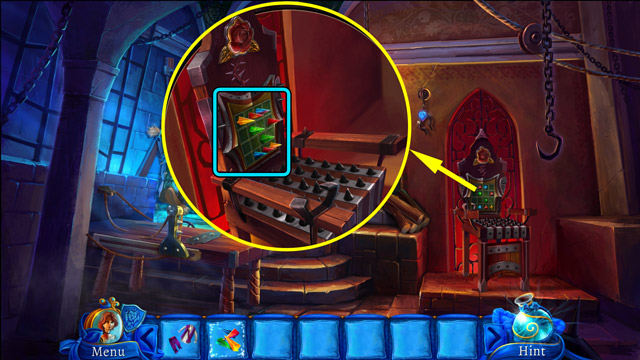 - Use the Pieces of stained glass on the broken glass in the window (D) and play the minigame.