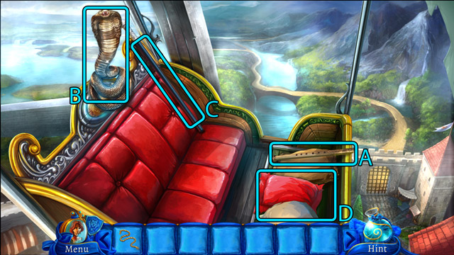 - Play the Flute to charm the snake (B).