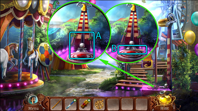 - Hit the high striker (A) with the Hammer twice.