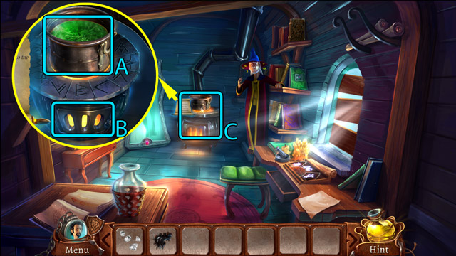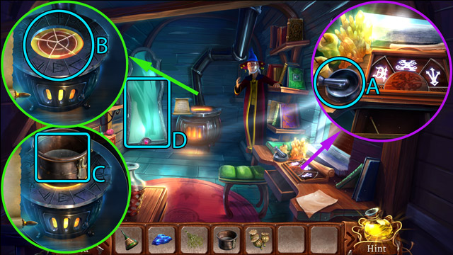 - Pick up the Cauldron (B).